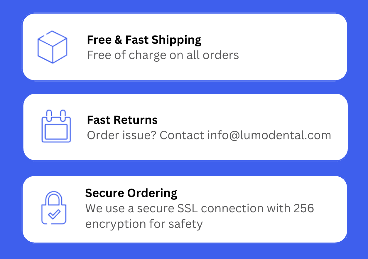 30 days from delivery. Start a return by emailing info@lumodental.com.