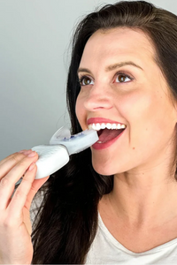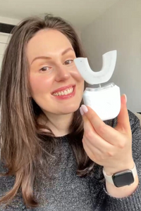 LumoBrush™ uses advanced sonic technology and a U-shaped, BPA-free silicone mouthpiece to clean every tooth at once.