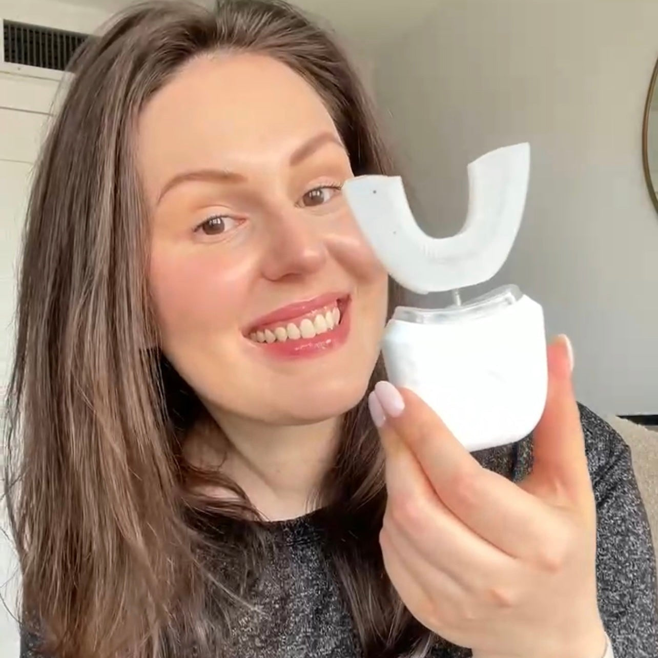 🦷 Brush your whole mouth in 30–45 seconds. The U-shaped, BPA-free silicone head cleans all sides of your teeth at once using gentle sonic vibrations. No scrubbing. No pressure.