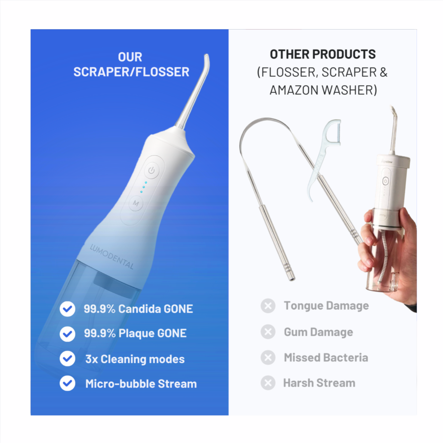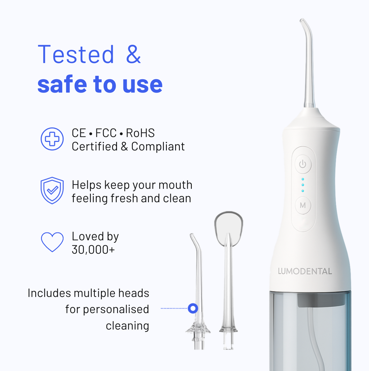 LumoWash™ uses a targeted water stream to clean between teeth and along the gumline, helping remove trapped food debris and buildup that brushing alone can miss for a fresher, cleaner feel every day 💧✨